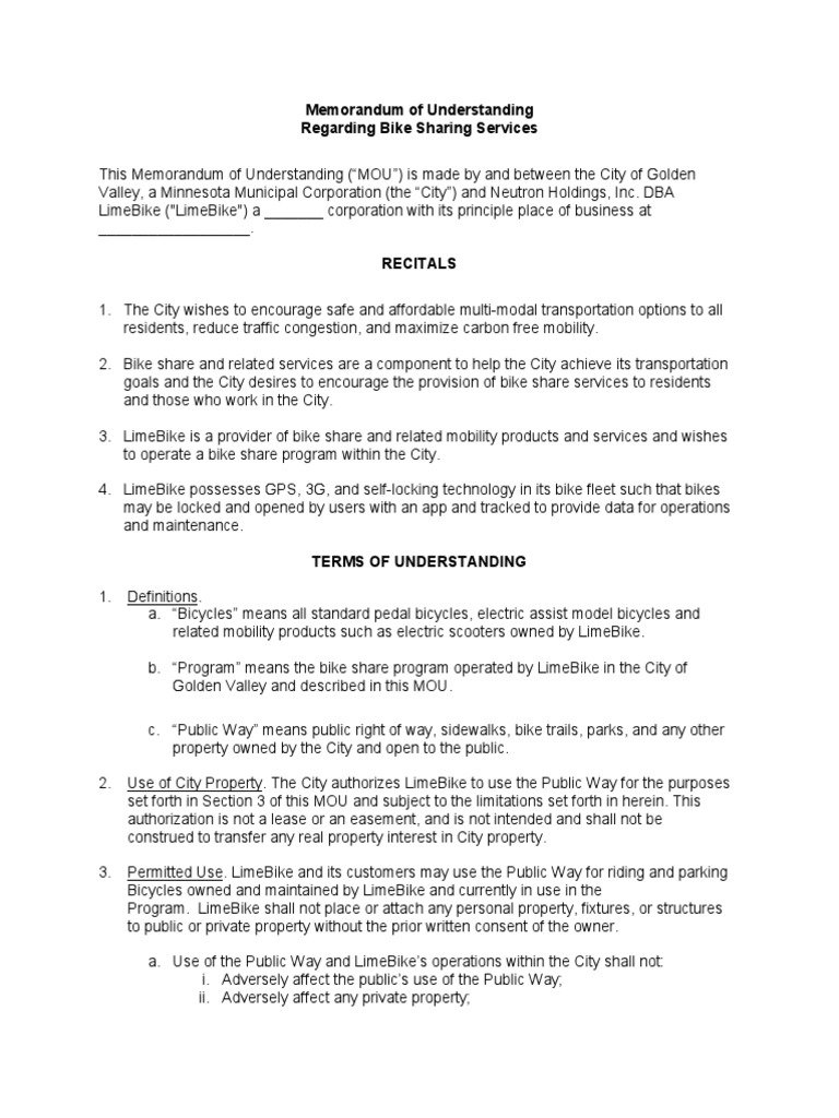 Memorandum of Understanding Regarding Bike Sharing Services PDF